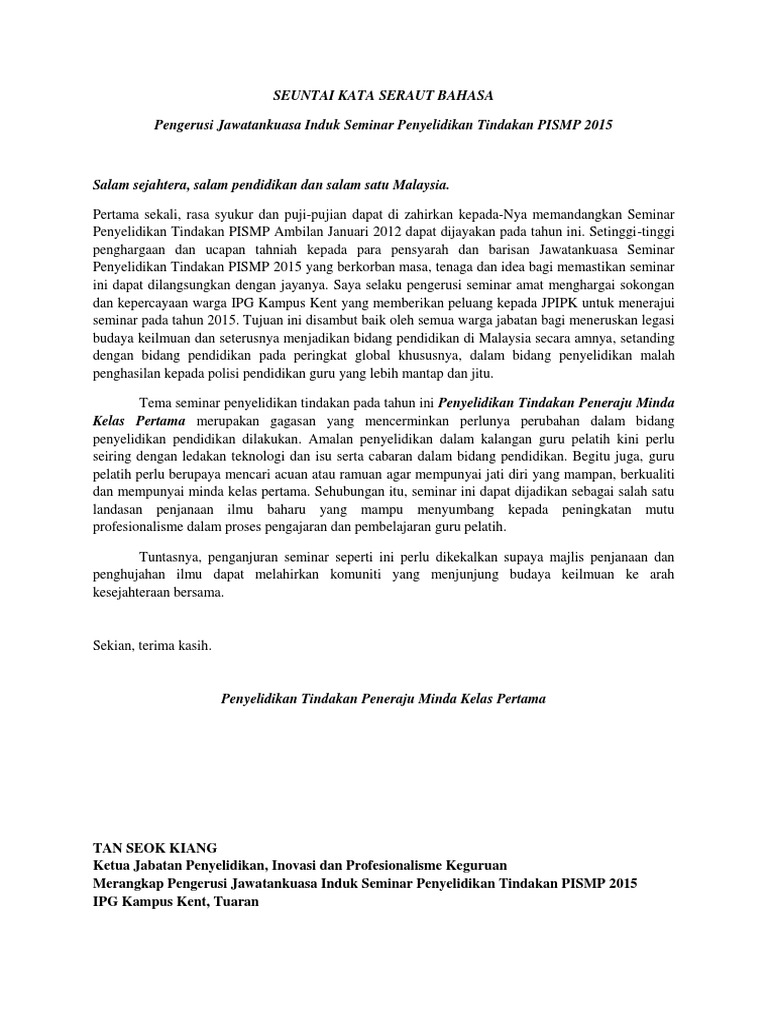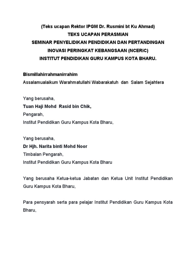 Teks Ucapan Seminar Penyelidikan Pendidikan